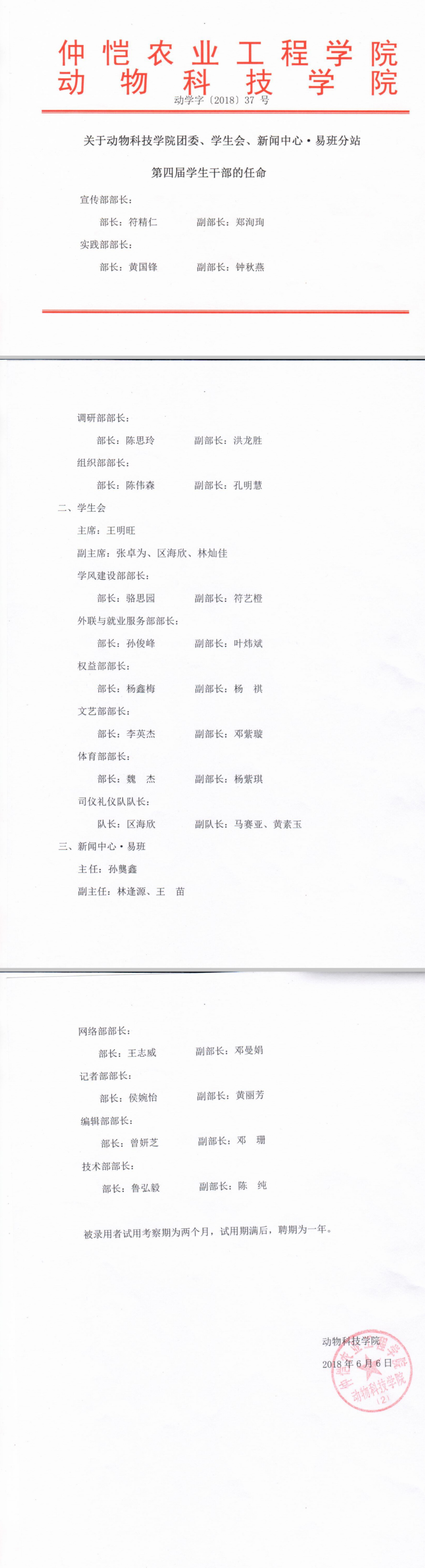 关于KY开元集团官网团委、学生会、新闻中心·易班分站第四届学生干部的任命的通知
