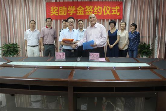 11月17日下午,“天科奖助学金”签约仪式在白云校区刘宇新楼KY开元集团官网会议室顺利举行。开元官网副校长田允波,KY开元集团官网党总支书记曾献尼、副院长黄运茂及天科国际集团董事长邱桂雄、人事主管丘恒芳、经理邓晓华等出席仪式。