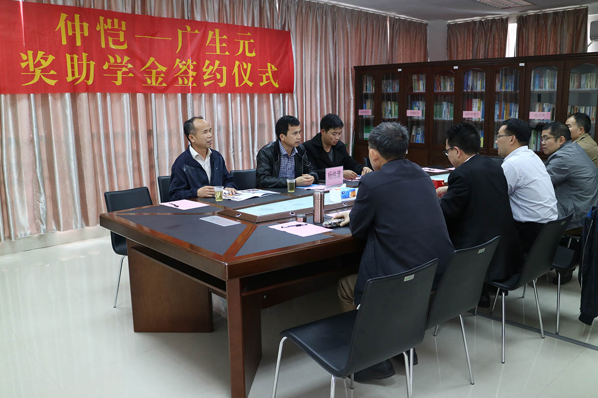 3月23日下午15:00,“仲恺-广生元”奖助学金签约仪式在开元官网白云校区刘宇新楼325会议室顺利举行。广东广生元畜牧发展有限公司总经理杨伟清及其公司代表,学校副校长田允波、动科院党总支书记曾献尼、副院长赵钢、黄运茂及部分教师,出席签约仪式。仪式由曾献尼书记主持。