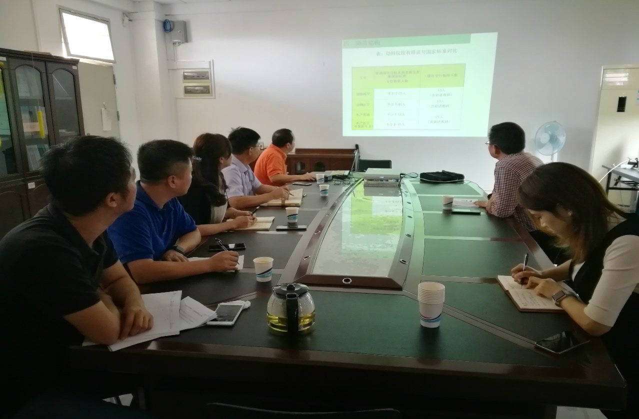 院长林蠡介绍了学院基本情况,重点汇报了党建思想政治工作、“3+1”人才培养模式改革、师资队伍、学科建设、科研平台、学生管理等方面的工作及亮点,同时也指出了学院存在不足及未来发展思路。党总支书记欧坚泉就教工党支部建设及双带头人落实情况、动物医学专业及动物医院建设、教学奖励性绩效分配等方面存在问题进行了补充汇报。与会人员积极参与讨论。宋垚臻书记对3+1人才培养模式、动物医学专业动物医院建设等问题进行了精准指导。