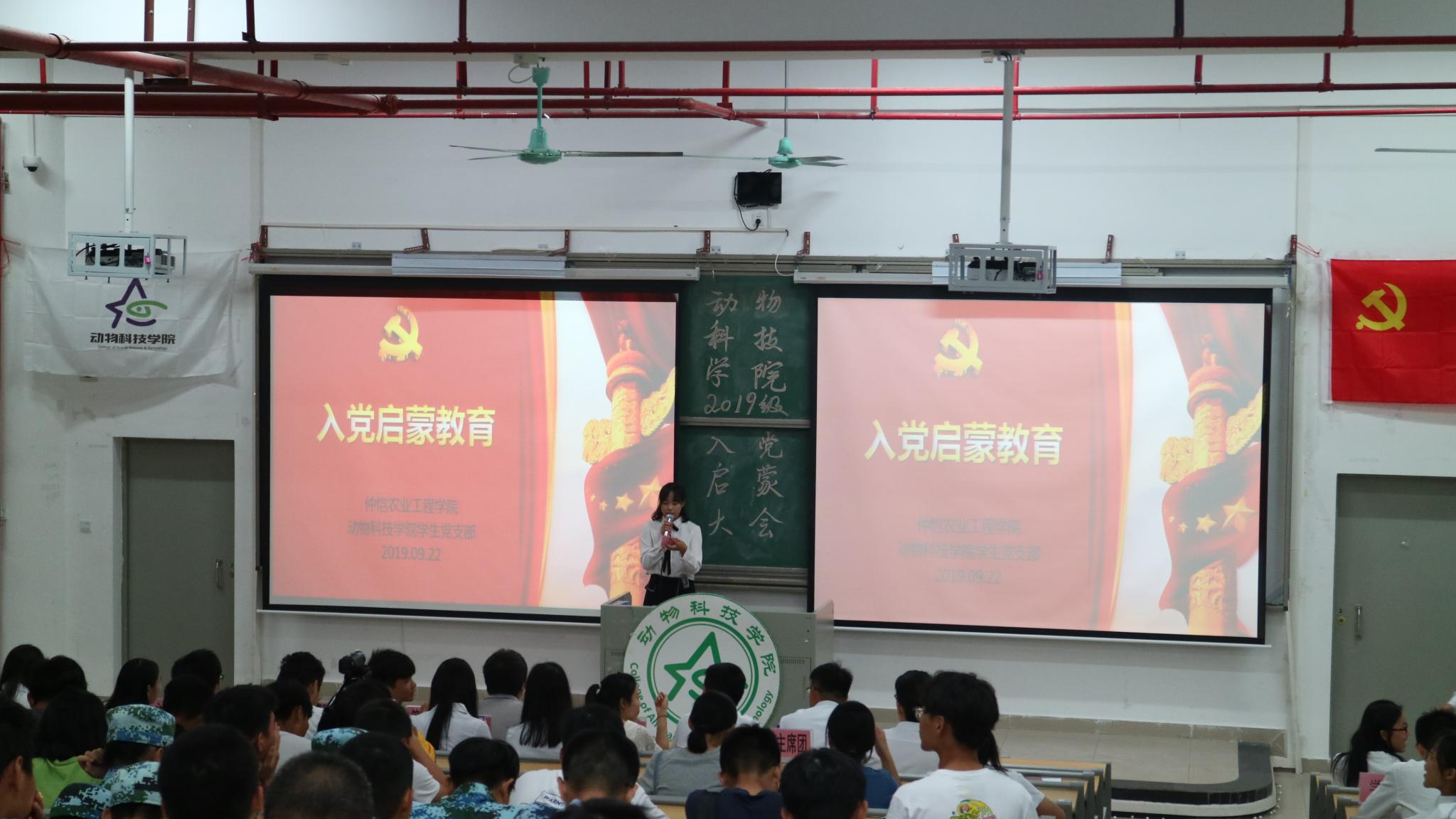 为了加强19级新生对入党相关知识的了解,提高新生入党的积极性,开元官网于2019年9月22日晚7:30在D2小礼堂举行“2019级新生入党启蒙教育”活动。出席本次活动的有院学生党支部书记许鸿和院团委副书记李博。19级全体新生参加本次活动。会议由辅导员许鸿主持。