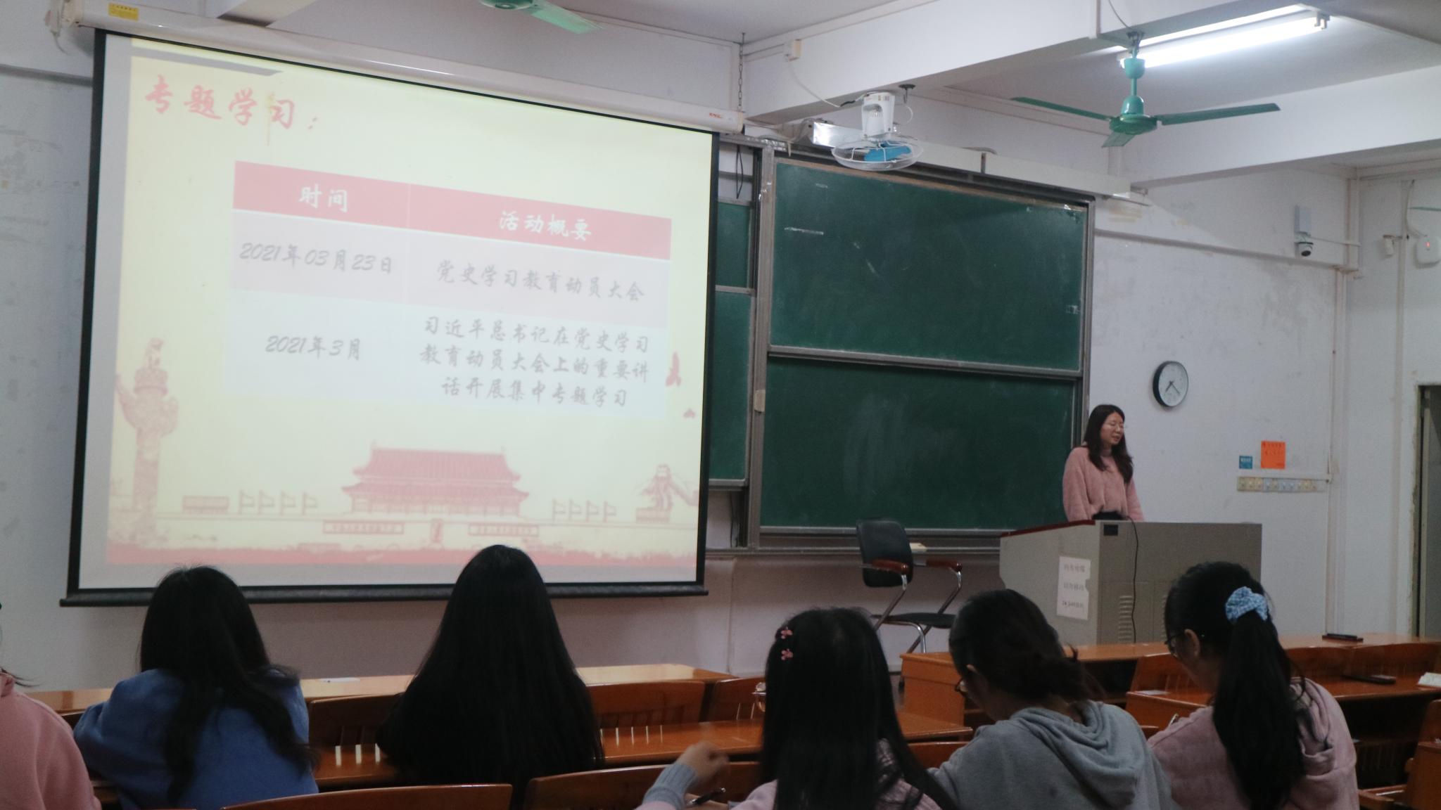 会上,许鸿首先明确了会议的主题,强调了党史学习教育的必要性和重要意义。随后观看学习了习近平总书记出席党史学习教育动员大会的视频。接着,许鸿从党史学习教育的意义、目标要求、重点内容以及党史学习教育的安排四个方面介绍了学生党支部关于开展党史学生教育的安排,强调党员必须积极主动地学习,高质量地完成党史学习任务。