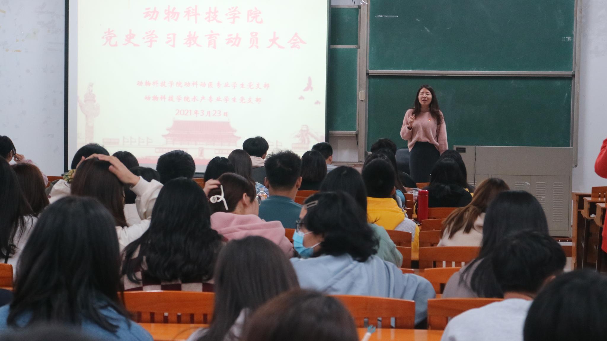 为充分激发大学生党员学习的积极性、主动性和责任感,3月23日KY开元集团官网动科动医专业学生党支部和水产专业学生党支部在杨钊杨勋楼410室开展党史学习教育动员大会。动科动医专业学生党支部书记许鸿、水产专业学生党支部书记赵江、全体党员及入党积极分子参加了会议,会议由动科动医专业学生党支部书记许鸿主持。