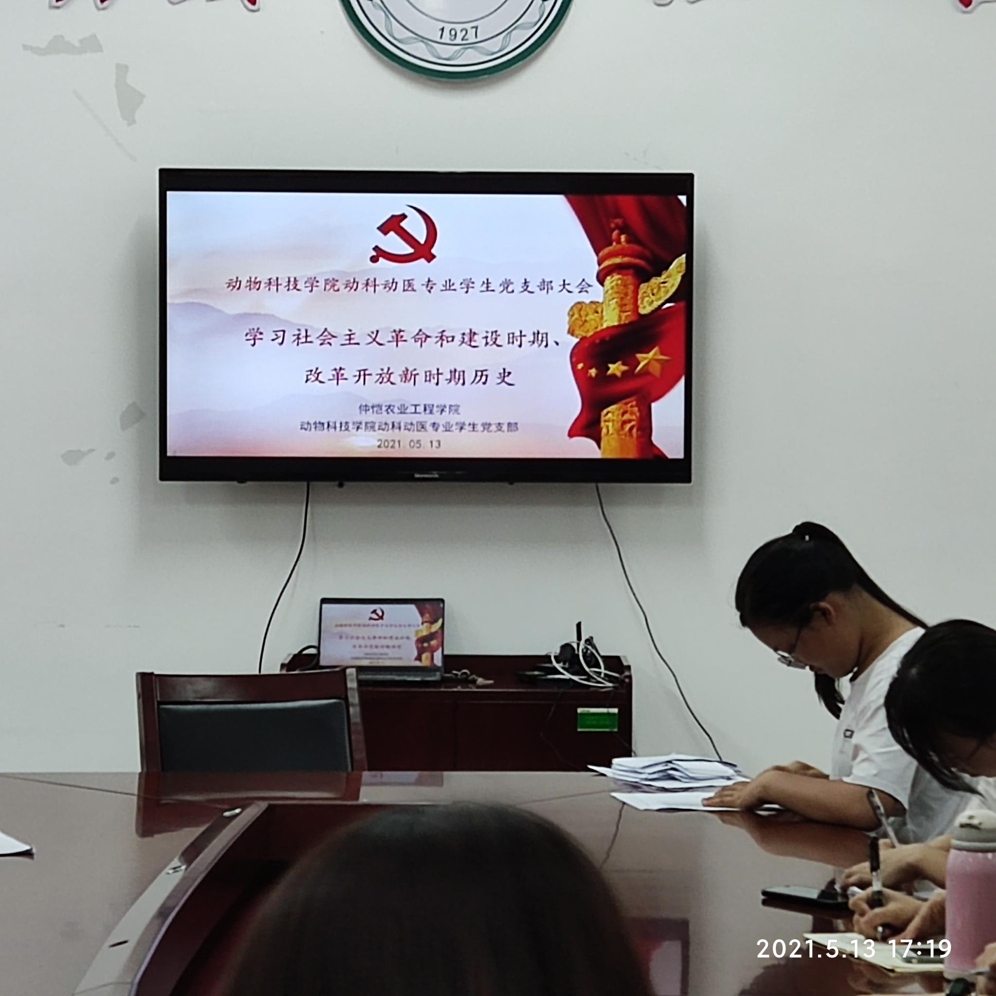 2021年5月13日下午,KY开元集团官网动科动医学生党支部在刘宇新楼314组织召开支部大会,组织党员学习党史之“社会主义建设的探索和曲折发展”。支部书记许鸿和动科动医专业学生党员参加本次会议。会议由支部书记许鸿讲党课。