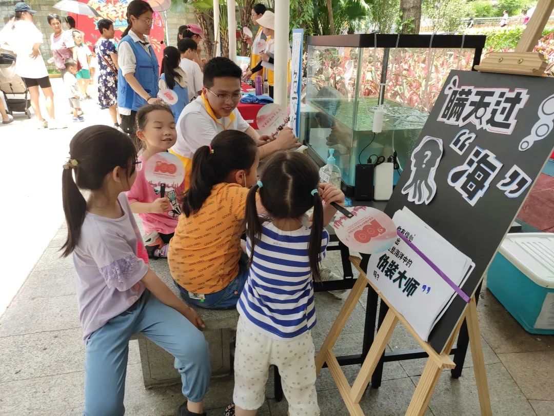 活动期间,大本营通过大量党史教育、野生动物保护法、水产动物科普的易拉宝宣传、活鱼展示和小游戏吸引了许多游客驻足,许多家长带着小朋友一起参观学习并热情地参与游戏中。