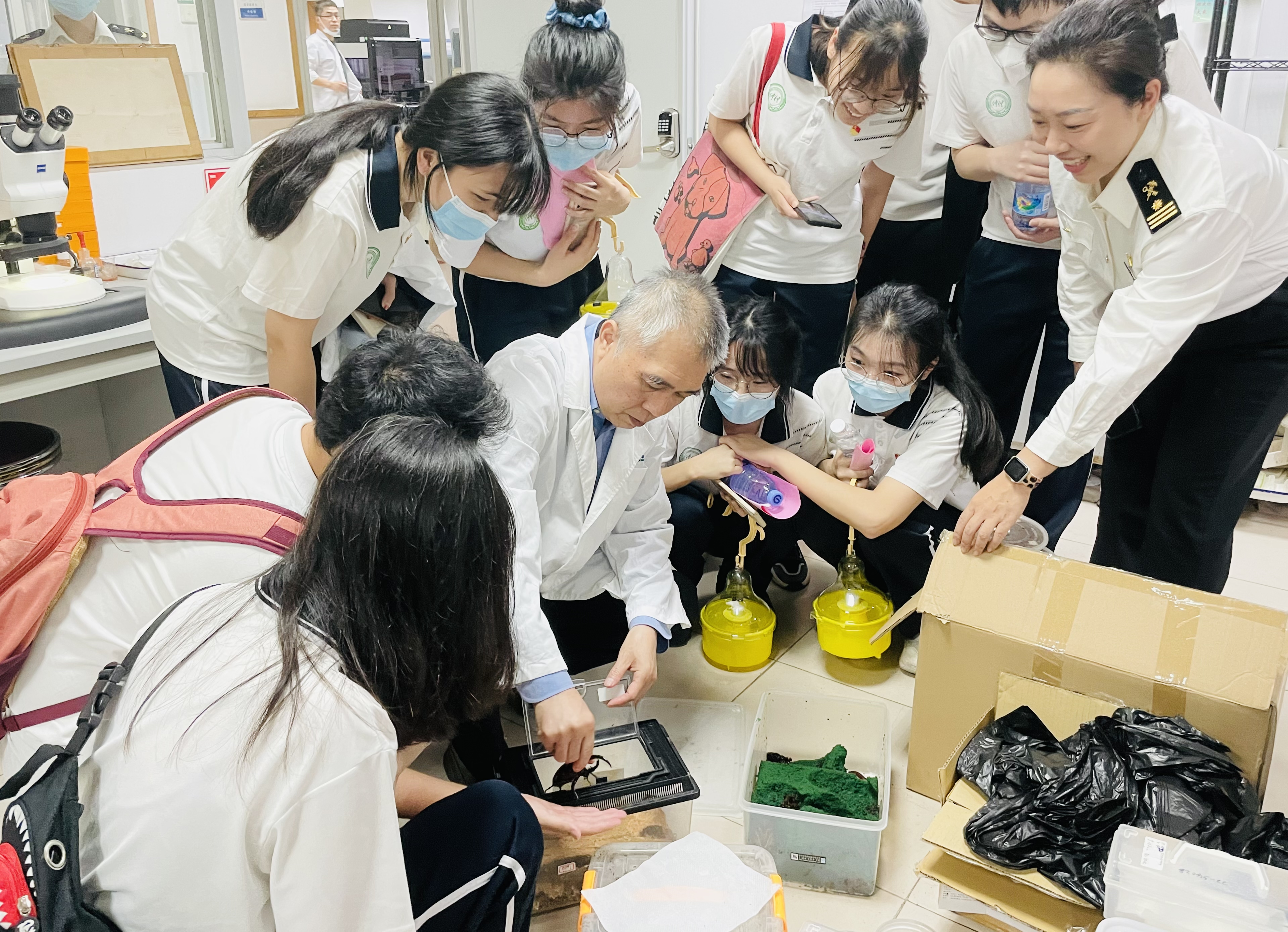 学院师生党员首先到天河海关党建文化阵地进行学习观摩,随后到广州海关技术中心展厅进行参观,深入技术中心的国家重点实验室进行交流。双方人员就技术中心检验项目、实验室设备仪器及人员配备、动物防疫检疫知识等展开热烈的探讨。