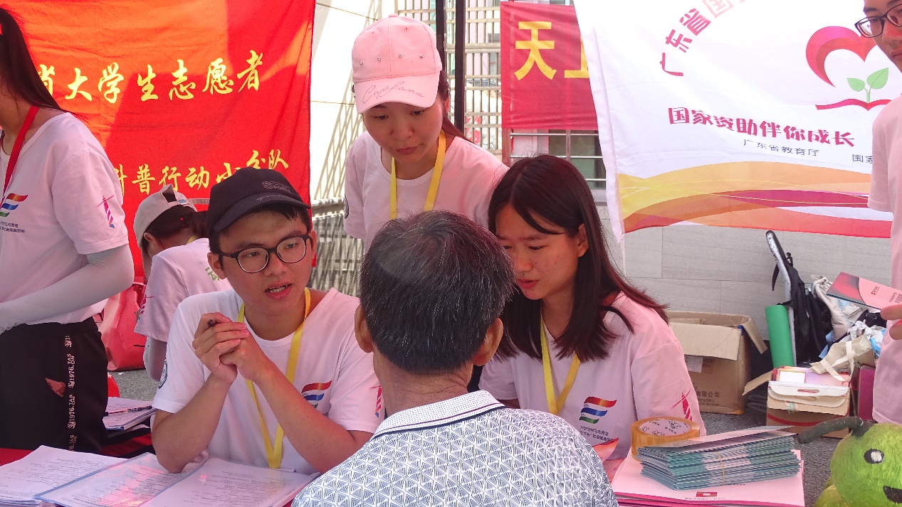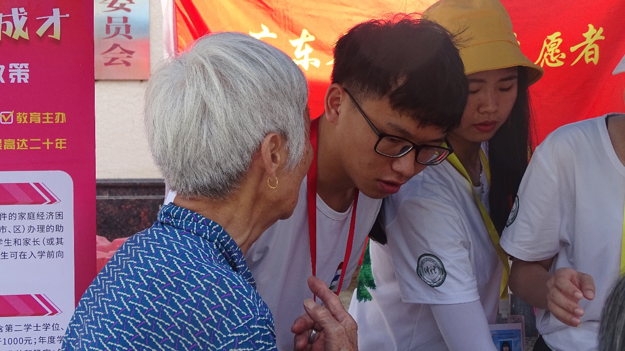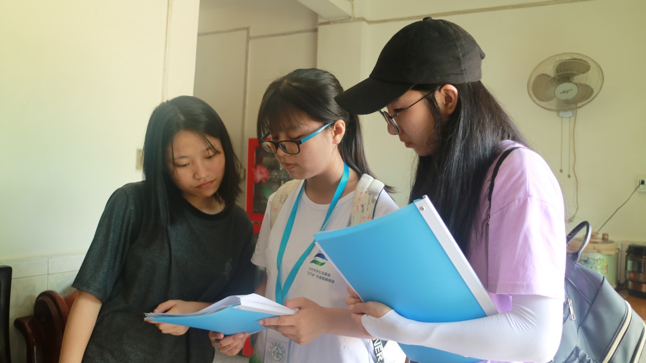 许多镇上村民都被摊位吸引驻足观望或上前咨询,上至九十下至六岁,尽管其中有些村民交流有些许困难,但宣传组都耐心地为其解答讲解,并引导其完成问卷调查。中午队员们轮班看守摊位,下午继续投入宣传工作。