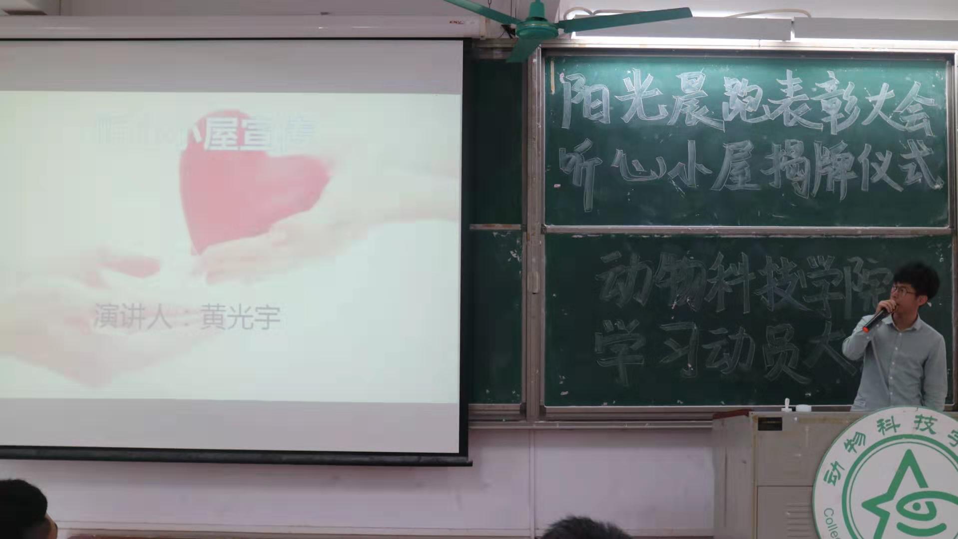 仪式的第一个流程是权益部的代表黄光宇同学发言。他向同学们阐明了听心小屋的活动宗旨和心理咨询的四大原则,详细的解释了心理咨询的问题类型和解决方法,以及预约听心小屋的方法。KY开元集团官网辅导员李博也在仪式上指出,同学们都应该正确看待心理问题,塑造良好的心理健康氛围,及时排解负面的情绪。在仪式的最后,李博老师为听心小屋进行了揭牌,到此,本次仪式就此落下帷幕。