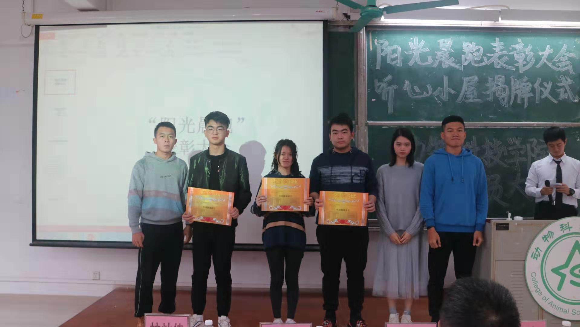 在这一个学期的晨跑活动中,涌现了许多先进集体和个人。其中动医182班级表现尤为突出,获得了本次阳光晨跑表彰大会的先进集体第一名,第二名被动医181班级收入囊中,动科181班级获得第三名。本次大会还评选出了32名先进个人,先进班级代表和先进个人代表也依次上台发表了感想。