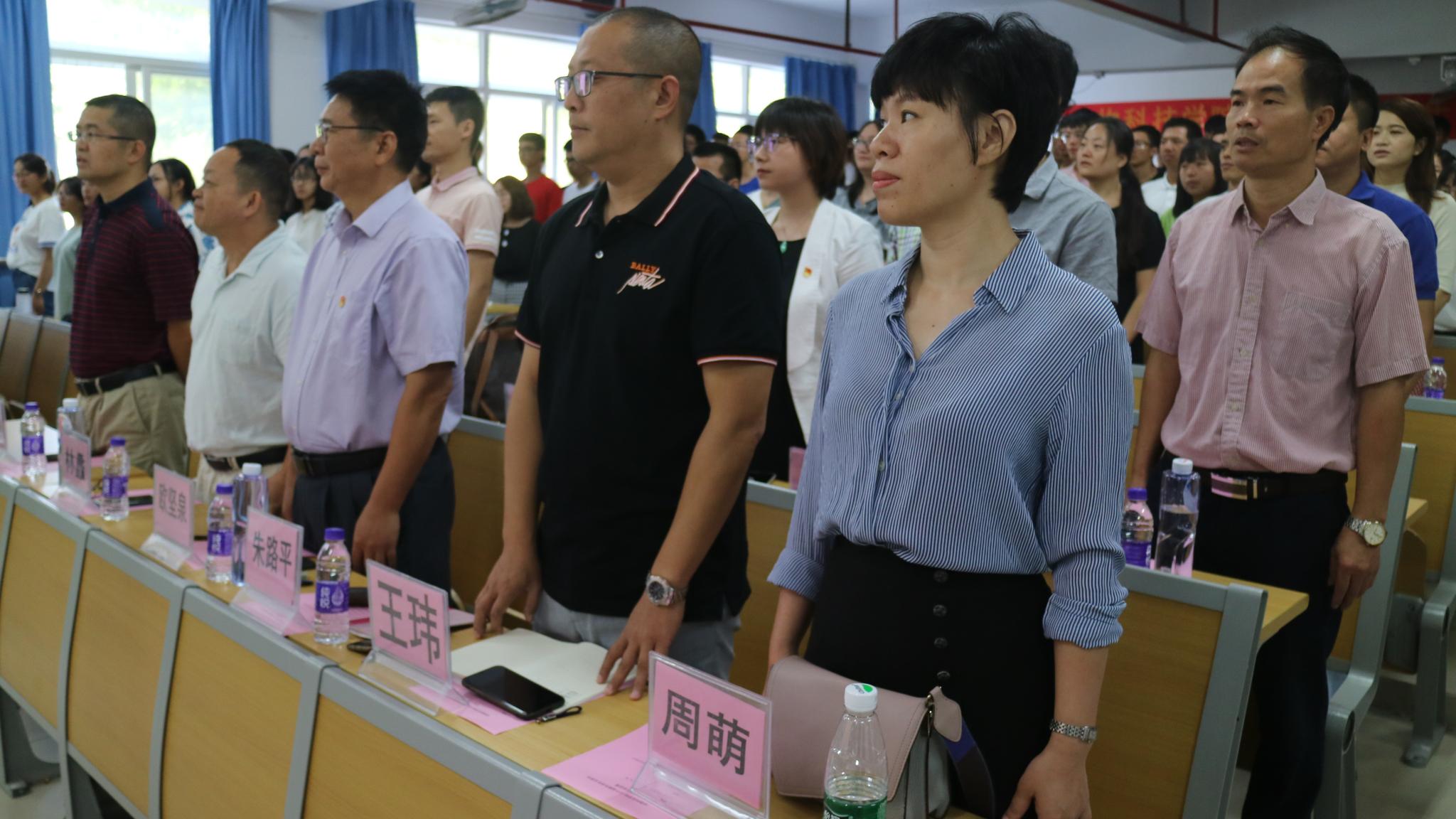 伴随着激昂宏伟的国歌,大会正式拉开序幕,全体师生齐唱国歌表达对伟大祖国的热爱之情。