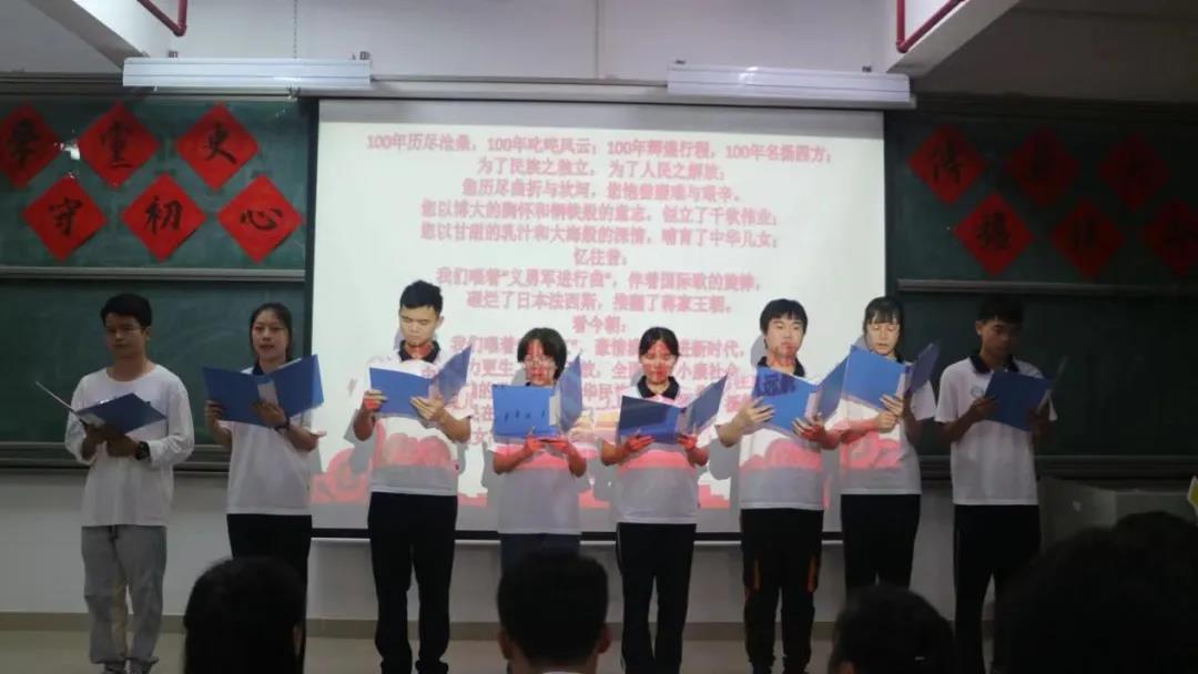 活动的中场,由团委的全体成员激情澎湃的朗诵了《西江月·井冈山》和《浪淘沙·北戴河》红色诗词。随后,张秋爽通过回归顾历史,坚定信念、联系现实,实现自我定位和展望未来,梳理理想这三个方面来分享在党史学习中的心得。