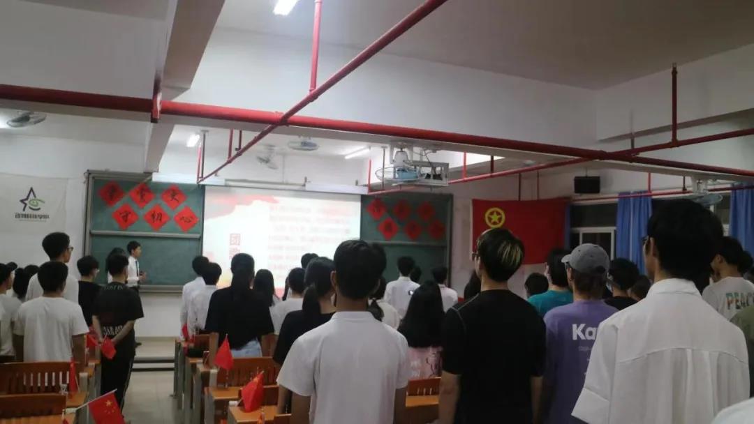 活动开始,由主持人宣布活动开始并介绍活动主题和到场嘉宾,全体成员起立,整齐划一地面向团旗,奏唱团歌。