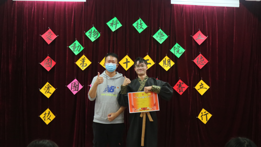 各班参赛代表的开场白口号都铿锵有力,充分展现出本班的气势和信心。惟妙惟肖的精彩表演体现了开元官网学生良好的精神面貌,其中水产201带来的的爱国主义小品《黄海魂》以一种穿越的方式充分表达了从古至今的人们对爱国主义的理解与对爱国的体现,有声有色,生动形象的表演博得了满堂喝彩,将比赛的氛围推到了最高潮。比赛期间还穿插了猜字谜的游戏,观众们踊跃参与,积极抢答。随后各班级表演结束,在等待比赛结果时,由调研部带来演唱《成都》,动听感人的歌声赢得了观众的掌声。随后李博上台进行总结发言,他指出同学们需有一颗爱国之心、理性爱国,并鼓励同学们爱国爱校、立德立行,同时还表扬了各个参赛班级并希望同学们能团结内部,继续发扬爱国主义精神。