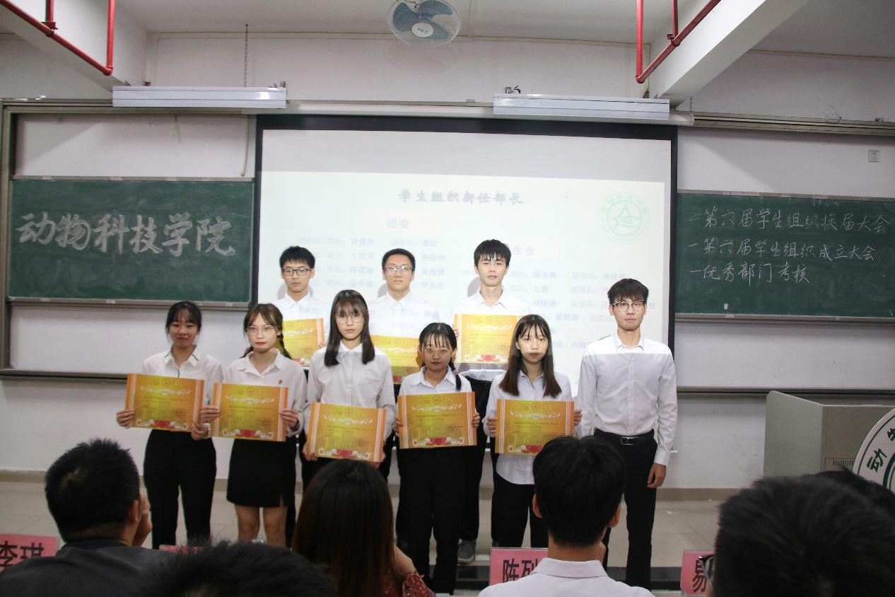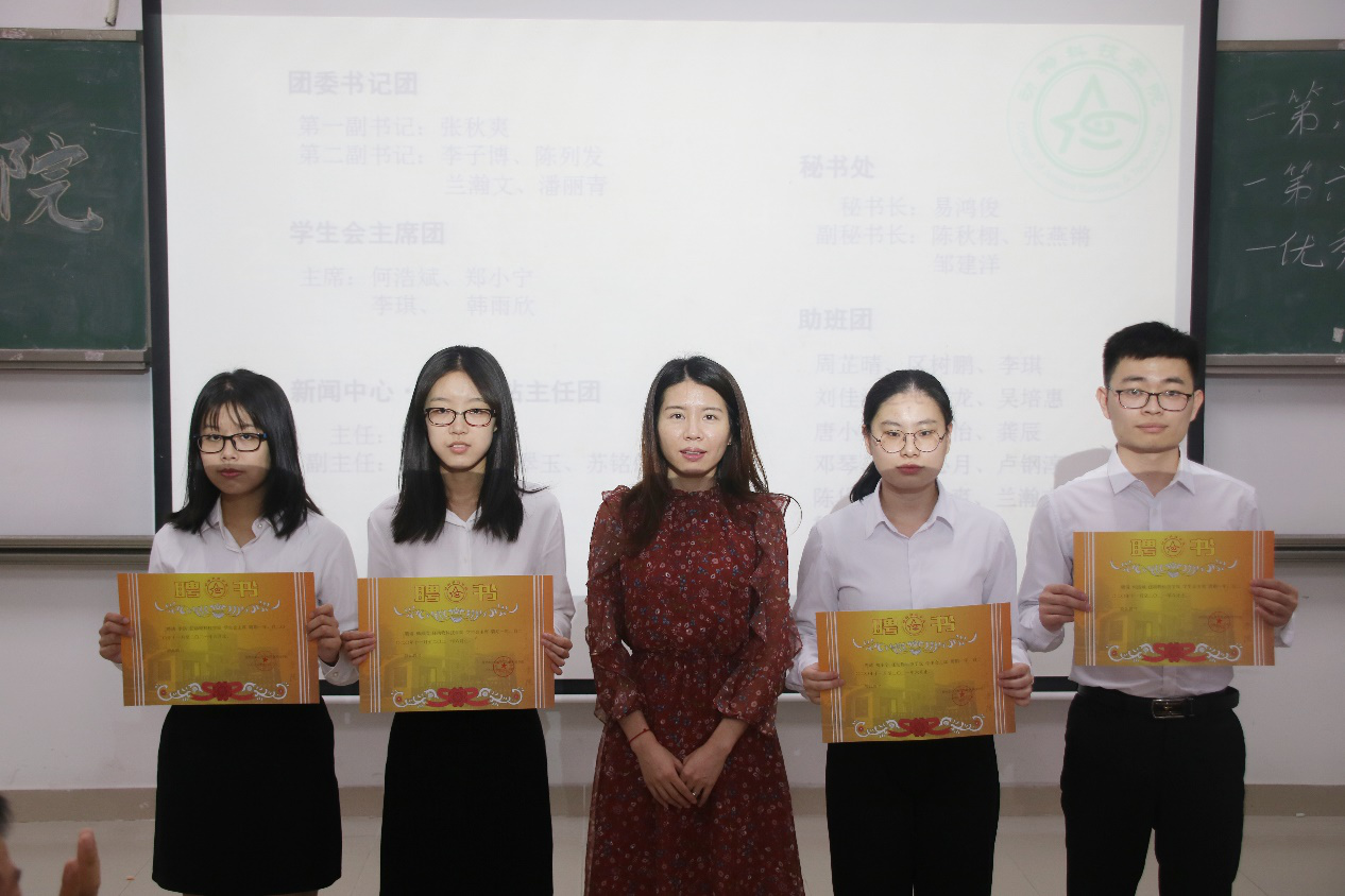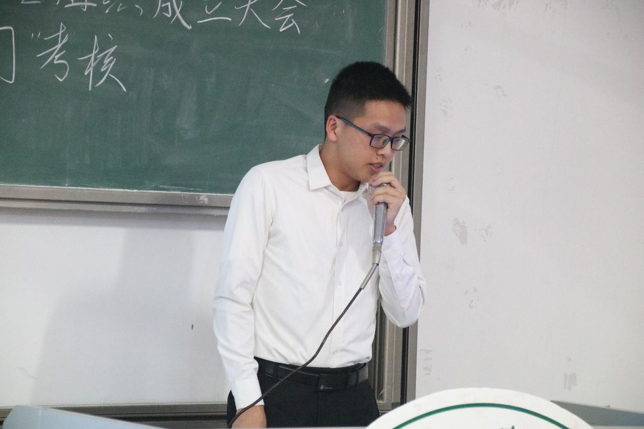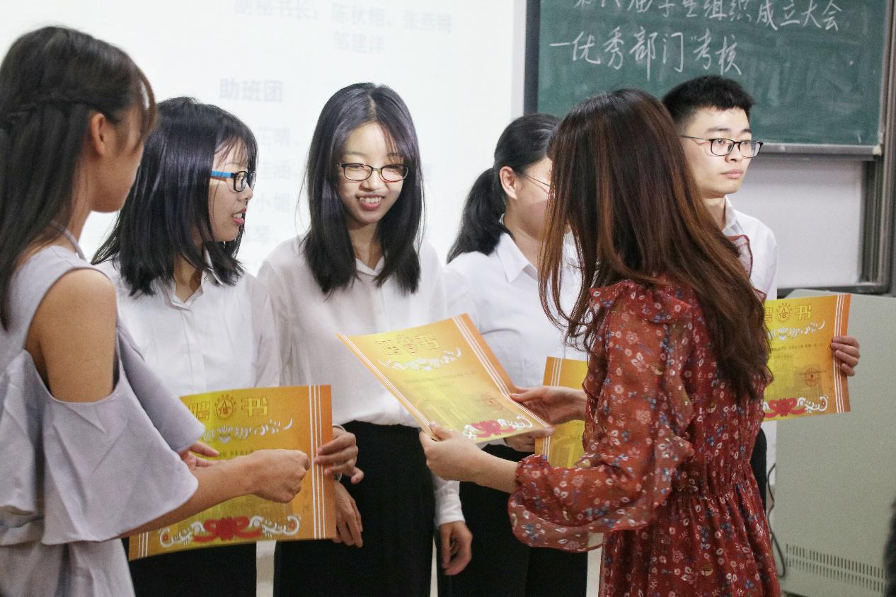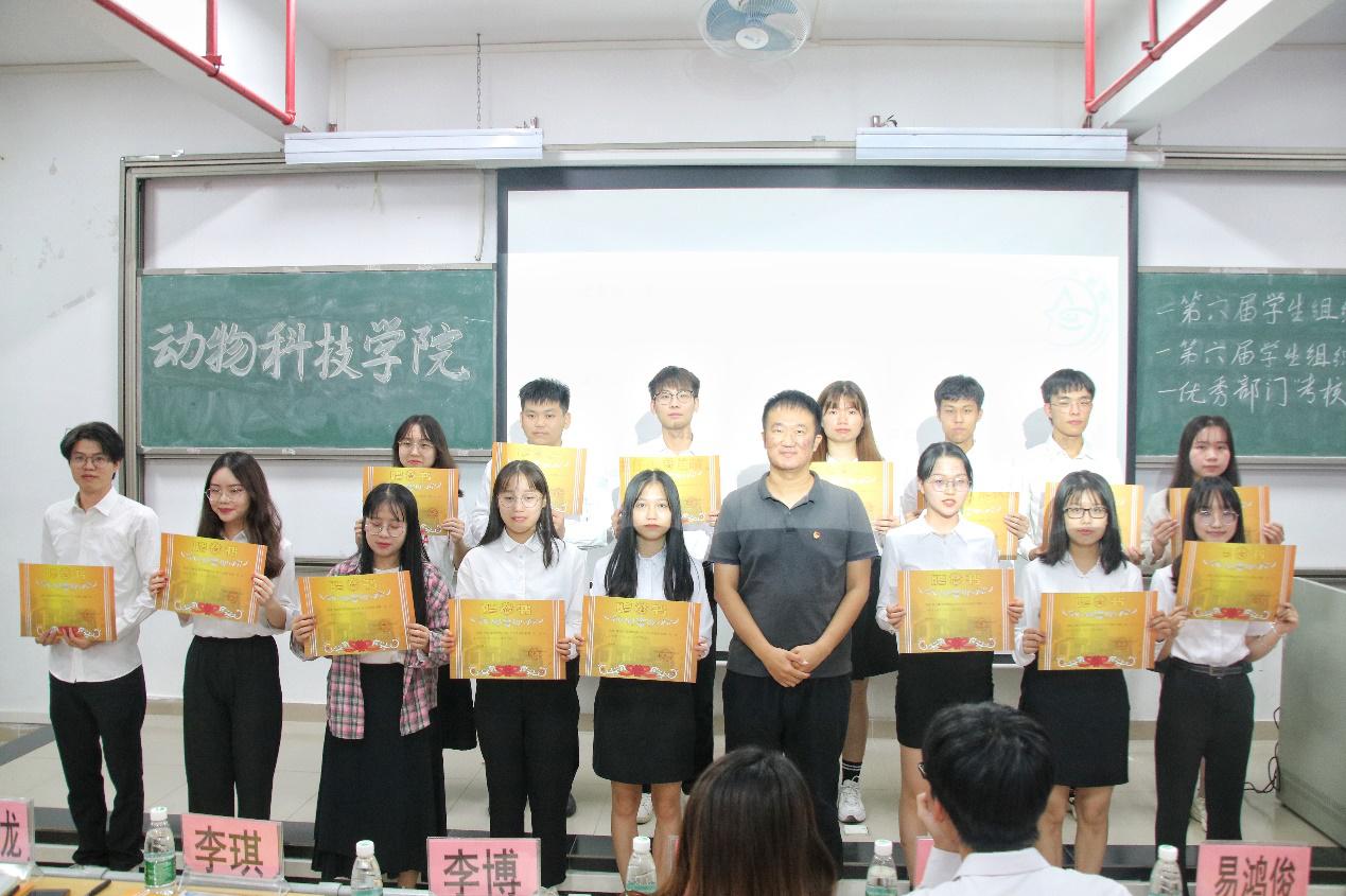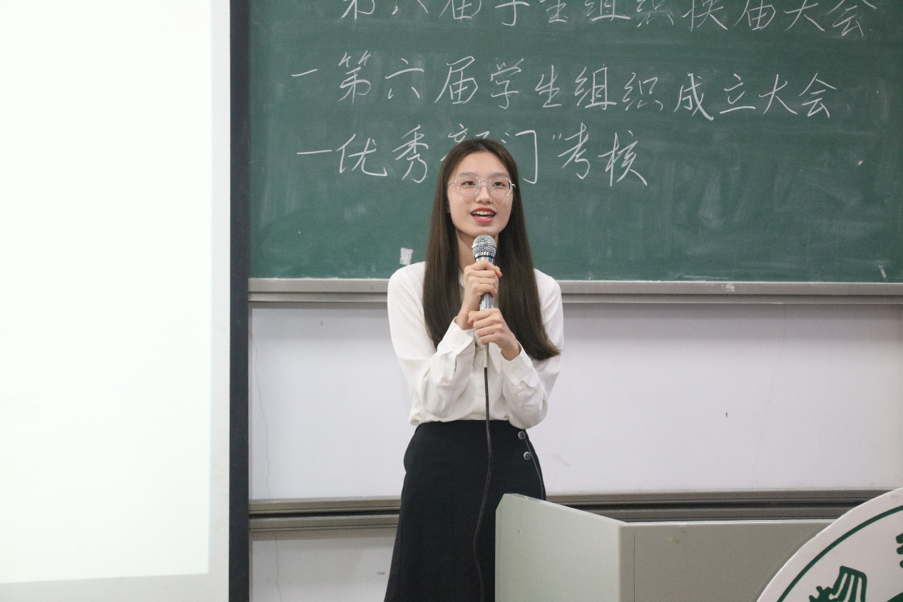 会议开始,司仪宣读新任书记团、主席团、秘书处秘书长团以及助班团名单,辅导员许鸿、李博为其颁发聘书,这份聘书,不仅代表着在这一年中工作的收获和成长,也承载着大家的认可。颁发完毕,团委第一副书记张秋爽作为学生组织负责人代表上台发言。张秋爽表示,在过去的时间里,学生组织的优秀榜样影响着并带领着她不断成长,促使她成为一个更加优秀的人,并希望在未来的工作中大家能够携手同行,追梦向前。其后,司仪宣读学生组织新任部长名单,学生组织负责人上台为其颁发聘书,部长代表陈玉佩上台发言。随后,司仪宣读第五届学生组织优秀干部、干事名单,并由辅导员许鸿、李博为其颁奖。紧接着,司仪宣读新任干事名单后,秘书处、团委以及新闻中心的部门代表上台发言进行部门考核,他们对所属部门的一年工作进行了汇报,并提出了部门未来的规划,发言其间汇报的工作成就以及播放的部门工作、团建视频精彩合集,赢得了观众的阵阵掌声。部门代表发言完毕,司仪宣读民主考核先进个人名单并为其颁发奖状。大会进行到此时,打分已统计完毕,司仪宣读优秀部门名单,颁发奖状。大会进入尾声,辅导员李博对大会进行了总结,他对大家提出了“四个得”。一是“干得过”,要怀一颗责任心,把工作做好,并在其中有所获;二是“稳得住”,要沉着冷静,具备应对以及处理突发事件的能力;三是“沉得下”,作为学生组织的一员,做事有序且沉稳;四是“不得忘”,辅导员李博提醒大家不忘初心、努力前行,希望大家可以在大学学得真本领,提升自身各方面的能力,为了祖国的伟大复兴贡献一份力量。
