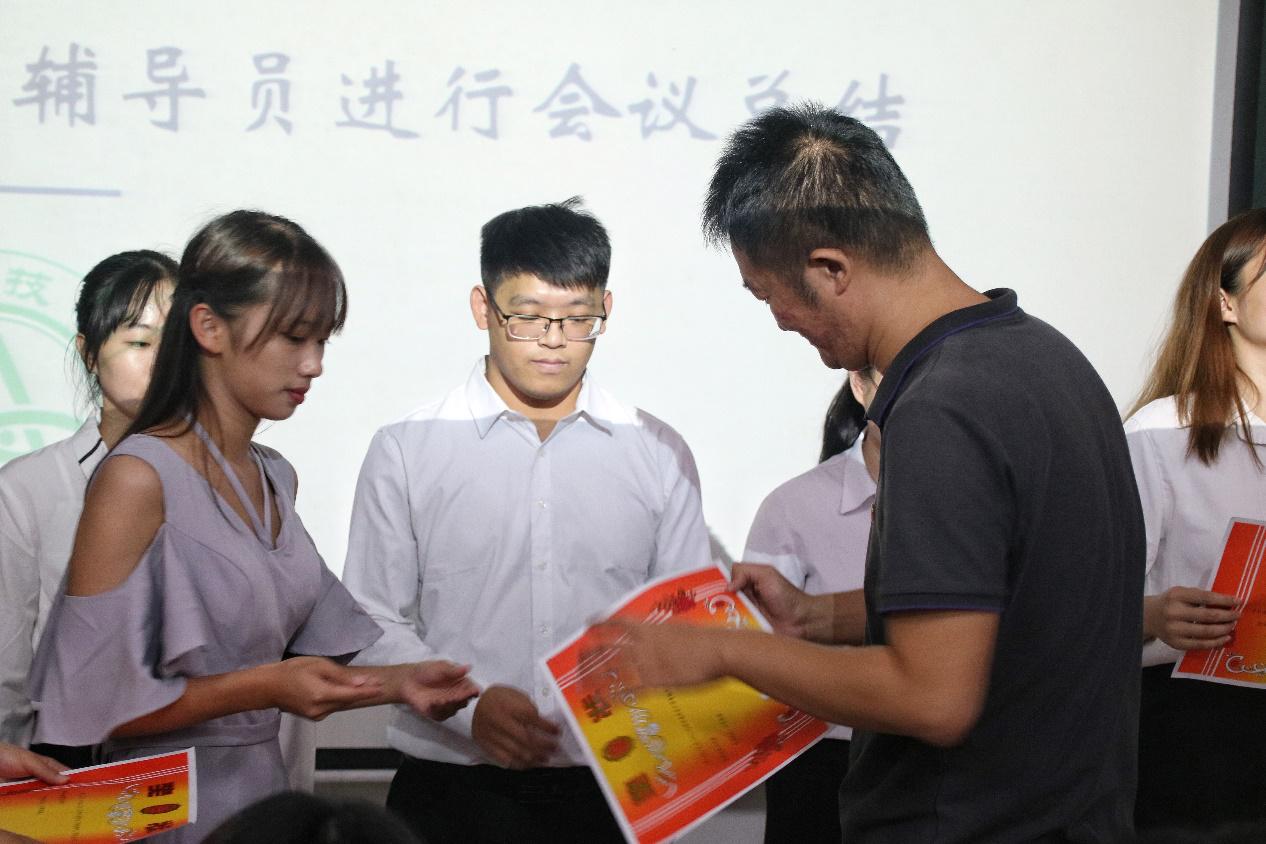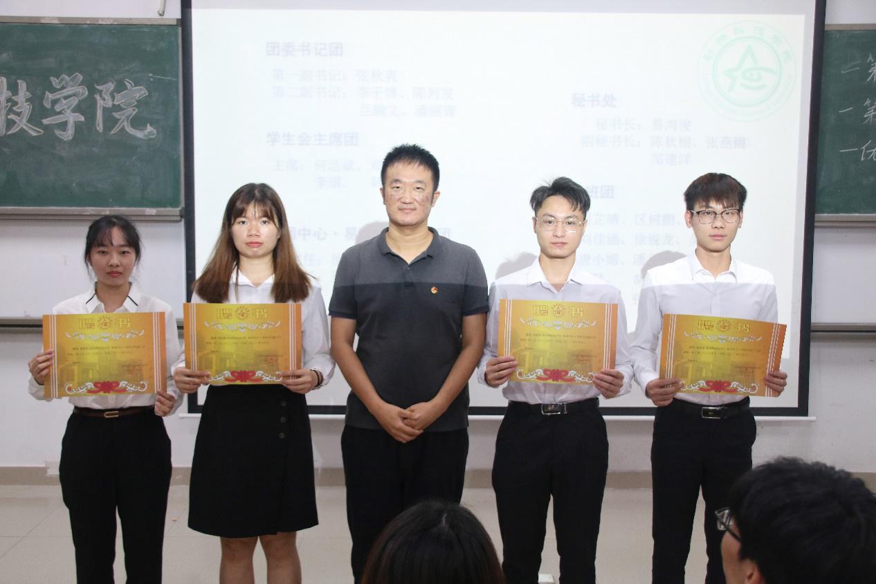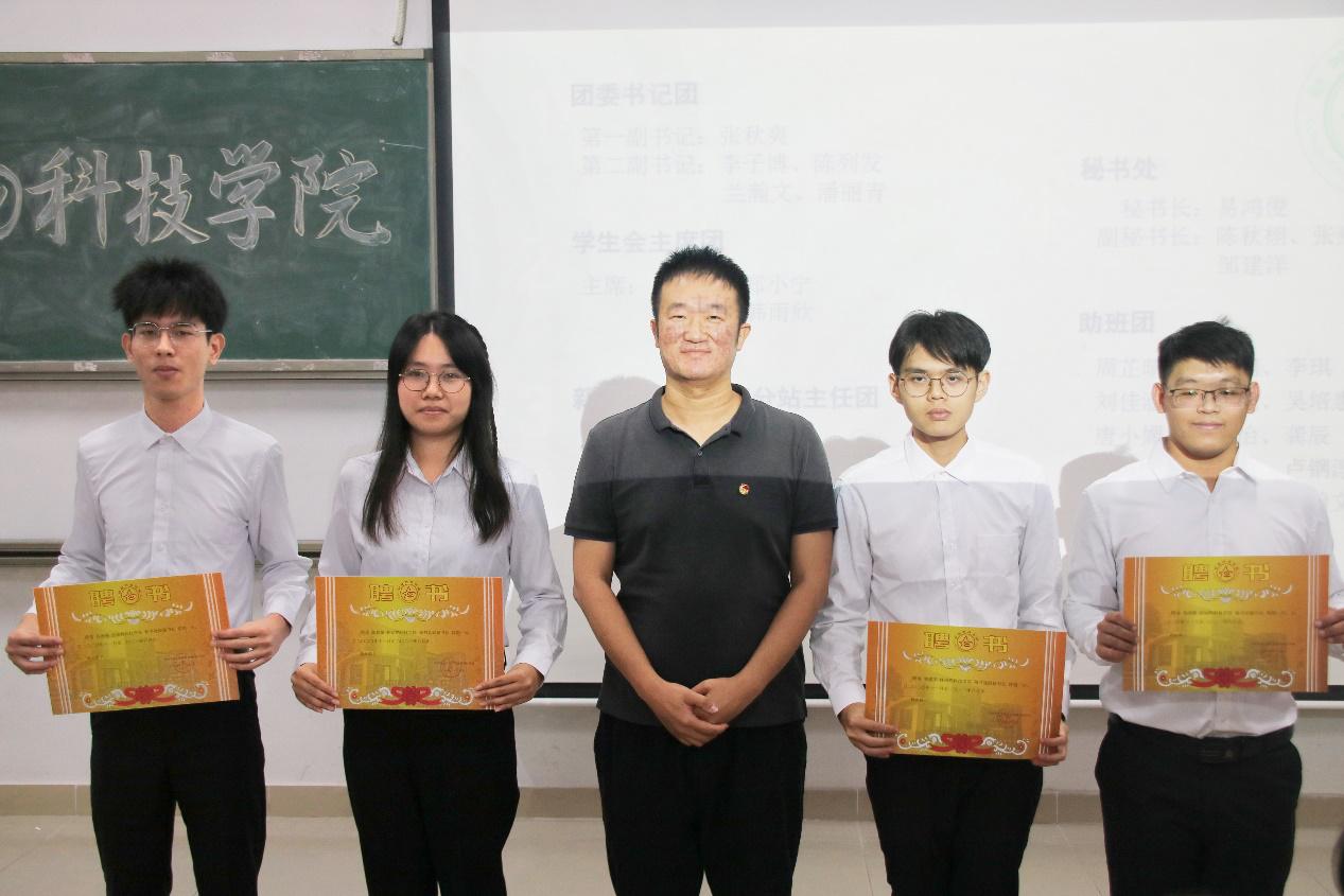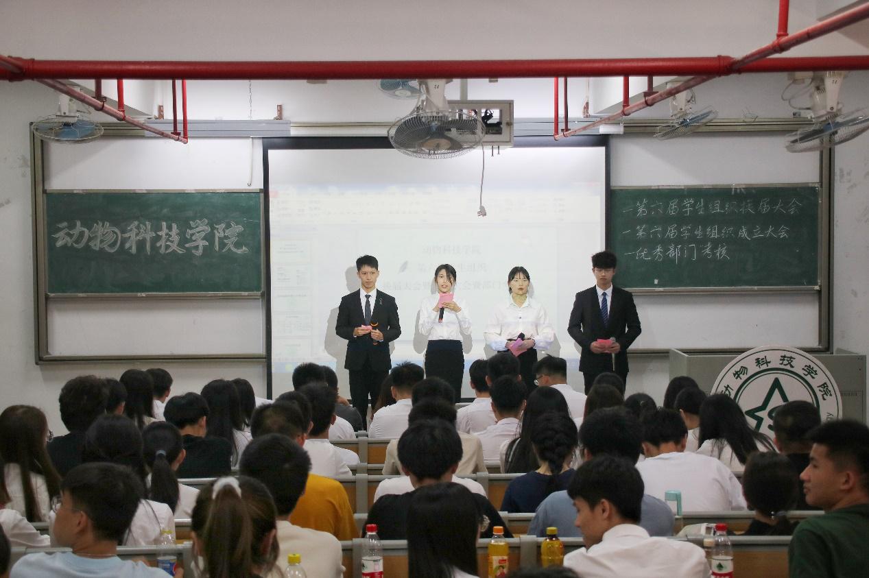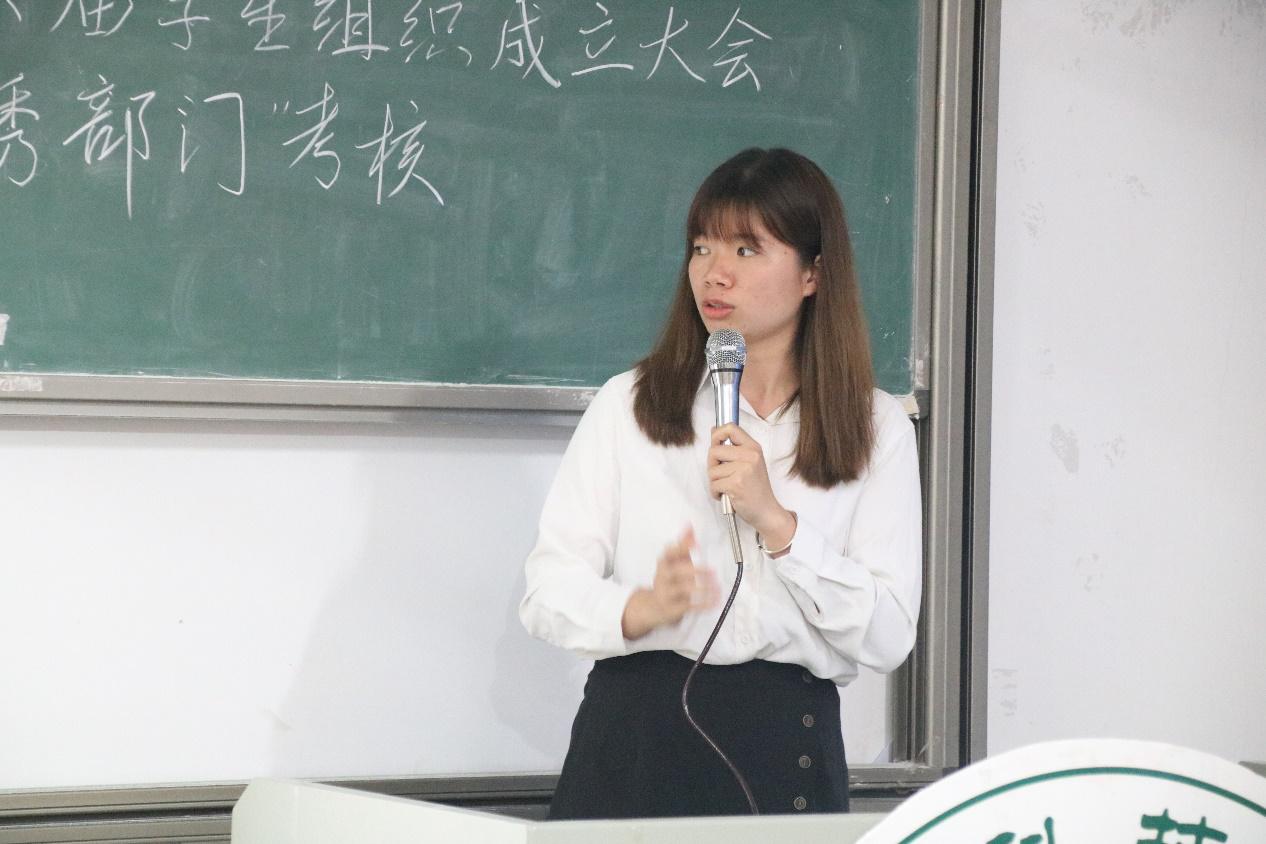 会议开始,司仪宣读新任书记团、主席团、秘书处秘书长团以及助班团名单,辅导员许鸿、李博为其颁发聘书,这份聘书,不仅代表着在这一年中工作的收获和成长,也承载着大家的认可。颁发完毕,团委第一副书记张秋爽作为学生组织负责人代表上台发言。张秋爽表示,在过去的时间里,学生组织的优秀榜样影响着并带领着她不断成长,促使她成为一个更加优秀的人,并希望在未来的工作中大家能够携手同行,追梦向前。其后,司仪宣读学生组织新任部长名单,学生组织负责人上台为其颁发聘书,部长代表陈玉佩上台发言。随后,司仪宣读第五届学生组织优秀干部、干事名单,并由辅导员许鸿、李博为其颁奖。紧接着,司仪宣读新任干事名单后,秘书处、团委以及新闻中心的部门代表上台发言进行部门考核,他们对所属部门的一年工作进行了汇报,并提出了部门未来的规划,发言其间汇报的工作成就以及播放的部门工作、团建视频精彩合集,赢得了观众的阵阵掌声。部门代表发言完毕,司仪宣读民主考核先进个人名单并为其颁发奖状。大会进行到此时,打分已统计完毕,司仪宣读优秀部门名单,颁发奖状。大会进入尾声,辅导员李博对大会进行了总结,他对大家提出了“四个得”。一是“干得过”,要怀一颗责任心,把工作做好,并在其中有所获;二是“稳得住”,要沉着冷静,具备应对以及处理突发事件的能力;三是“沉得下”,作为学生组织的一员,做事有序且沉稳;四是“不得忘”,辅导员李博提醒大家不忘初心、努力前行,希望大家可以在大学学得真本领,提升自身各方面的能力,为了祖国的伟大复兴贡献一份力量。
