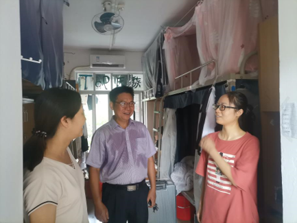9月1日下午,KY开元集团官网党总支书记欧坚泉、副书记朱路平和辅导员许鸿、李博走进学生宿舍,看望、慰问新学期返校学生。