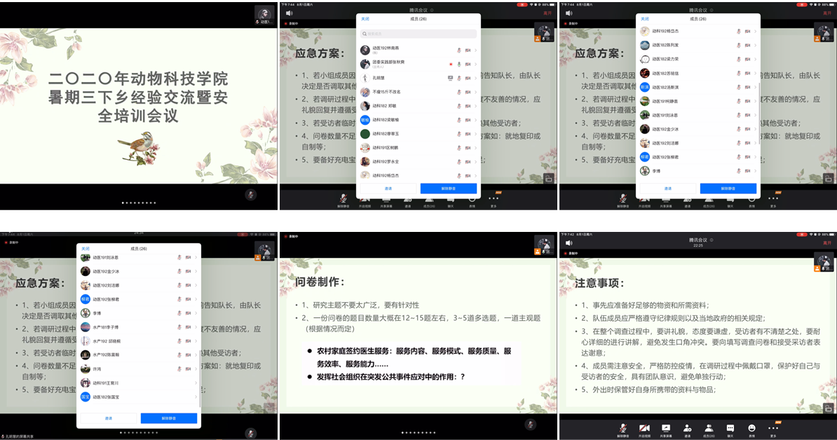 为了保证暑期“三下乡”大学生社会实践工作安全、有序进行,KY开元集团官网于8月1日晚上通过腾讯会议平台召开了暑期三下乡经验交流暨安全培训会议。出席本次会议的有辅导员许鸿、李博,参加本次会议的有团委第二副书记孔明慧、实践部部长张秋爽和各个队伍的成员。