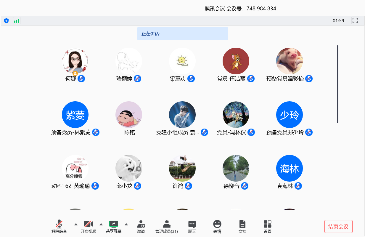 随后,党员代表梁惠贞,张穗玲,邱小龙等同志发表学习感想。王烁同志作为一名共产党员,起到了先锋模范作用。在疫情期间,他义无反顾地冲往一线,虽然因公殉职,但是他永远活在我们的心中。他用青春和生命践行着入党誓词,做为学生党员的我们,应该将王烁同志的精神传承下去。在疫情期间,我们也应该把时间和精力花在有意义的事情上,做好学生本分,努力学习真本事更好地为大家服务。