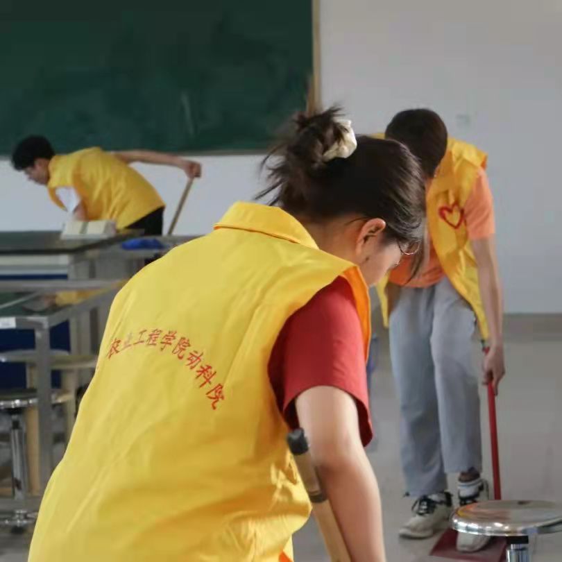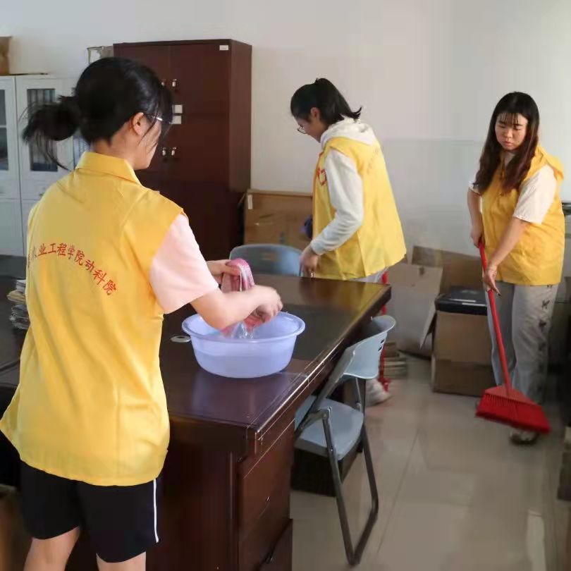 志愿者们都穿戴好了志愿服并准时到达了活动地点。即使天气炎热,但志愿者们仍干劲十足,他们充分发扬不怕脏、不怕苦、不怕累的雷锋精神,分工明确,默契配合,有的拿着扫把不放过任何角落的灰尘;有的用抹布将桌子擦拭干净;有的手握拖把将地板洗净;有的将物品摆放整齐……最后志愿者们共同清理了垃圾,在他们的共同努力下,实验室呈现出崭新的面貌。