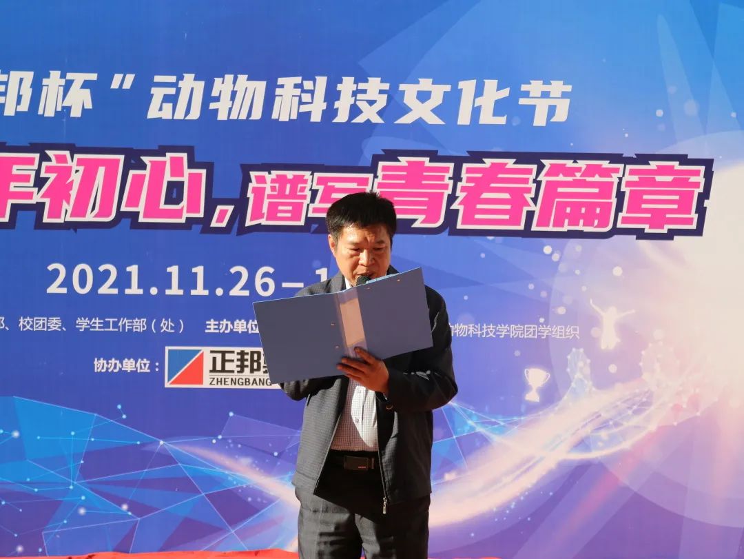 为了贯彻落实“三全育人”工作会议精神,培养学生的创新精神和实践能力,提高学生科学素养和综合素质,KY开元集团官网举办首届“正邦杯”动物科技文化节。11月28日,举行活动闭幕式,KY开元集团官网党委书记欧坚泉、学生工作处副处长沈洁、校基建处副处长徐骏、外国语学院党委副书记柴明勤、KY开元集团官网副院长黄运茂、KY开元集团官网党委副书记朱路平、KY开元集团官网系主任、辅导员老师以及100多名学生代表出席了本次活动。闭幕式由朱路平主持。