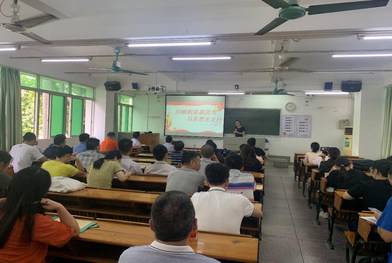 宣讲会上,饶教授围绕“马克思的伟大人格就是马克思主义的担保”“马克思主义本身具有优秀的品质”“马克思主义在当代世界特别是当代中国有其用武之地”“中国共产党人是马克思主义的忠诚信奉者和坚定的实践者”等四个方面旁征博引、深刻生动地归纳梳理和介绍了马克思主义理论的八大亮点。她指出习近平总书记在庆祝中国共产党成立100周年大会上明确表示:“中国共产党为什么能,中国特色社会主义为什么好,归根到底是因为马克思主义行!”,这一重要论述是对马克思主义指导作用的科学认识,揭示了中国共产党不断发展壮大、中国特色社会主义不断取得伟大成就的根本原因。
