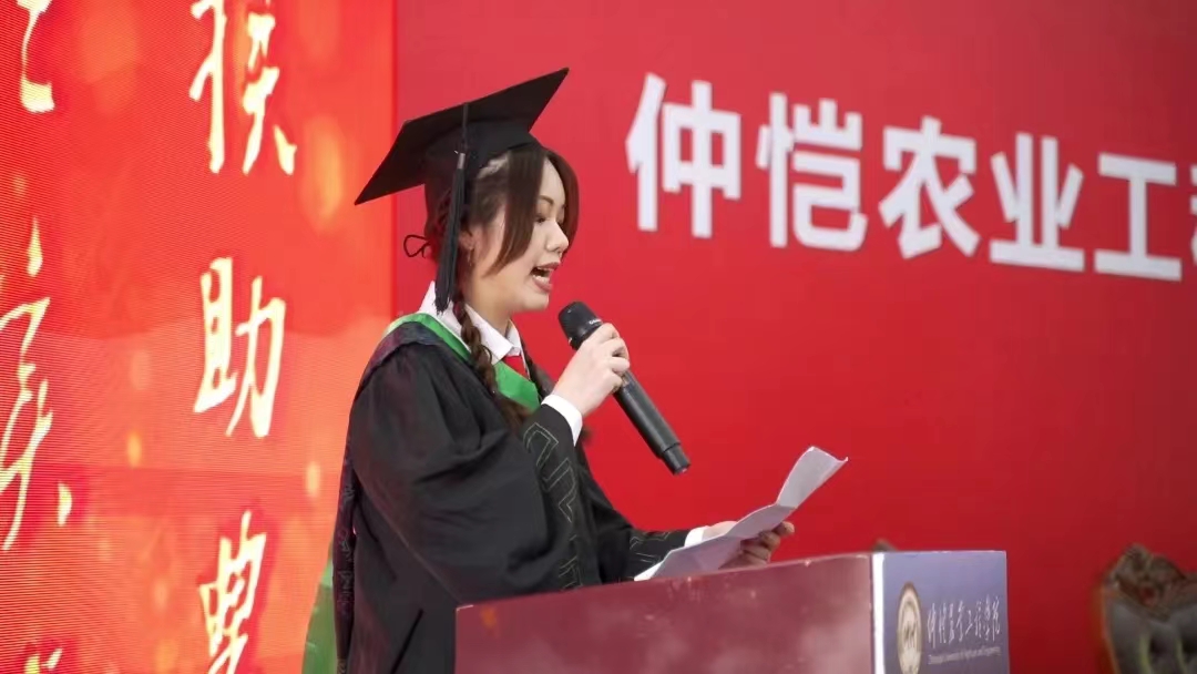随后学生代表胡心月代表全体毕业生向领导们、老师们的关心与支持、教导和培养致以衷心的感谢。