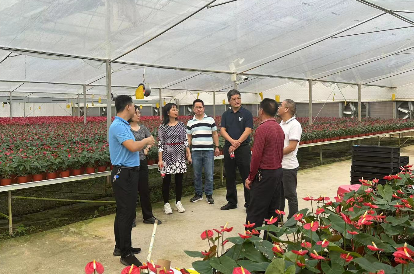 该镇花卉种植品种为红掌,科技特派员团队与企业技术人员就花卉自动化种植技术、优良品种选育等方面需求进行对接。